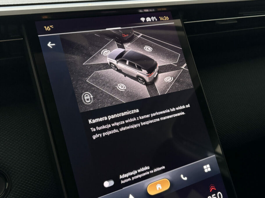 System kamer 360 stopni, czujniki parkowania przednie i tylne