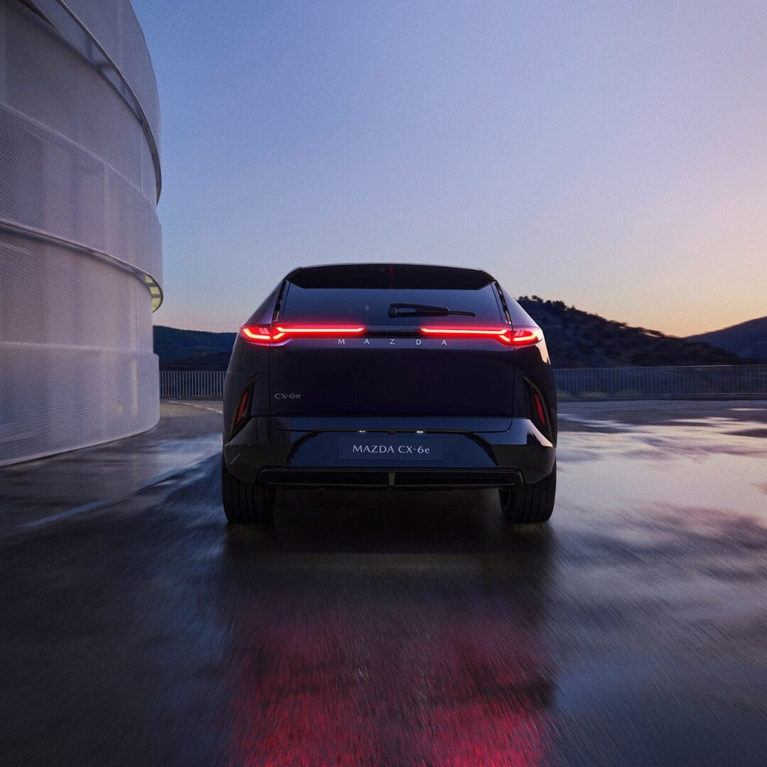 Dla tych, którzy stawiają wyjątkowość ponad utarte schematy – nowa Mazda CX-6e wyróżnia się elegancką, sportową sylwetką i doskonałym rzemiosłem w każdym detalu. Przemyślane, zintegrowane technologie oraz innowacyjne systemy bezpieczeństwa zapewniają najwyższy poziom komfortu i pewności podczas codziennych podróży. Przygotuj się na dynamiczną jazdę z zasięgiem do 484 km1 i opcją szybkiego ładowania prądem stałym (DC).