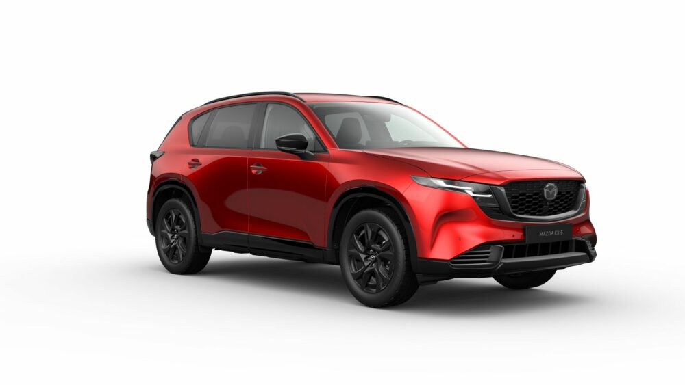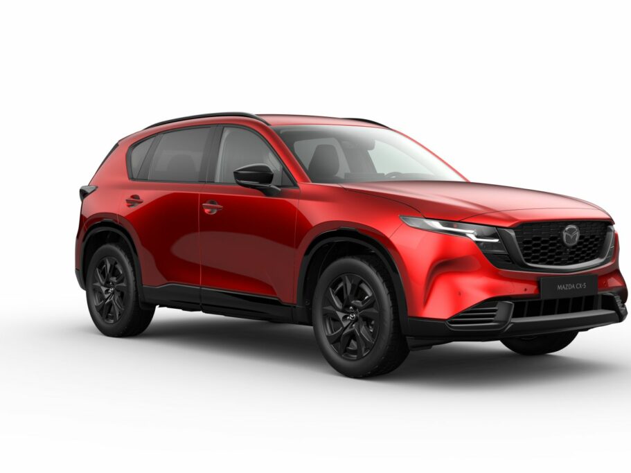 Nowa Mazda CX-5 z silnikiem benzynowym 2.5 o mocy 141 KM z automatyczną skrzynią biegów, w nowym kolorze Soul Red Crystal i w wersji wyposażenia Exclusiveline